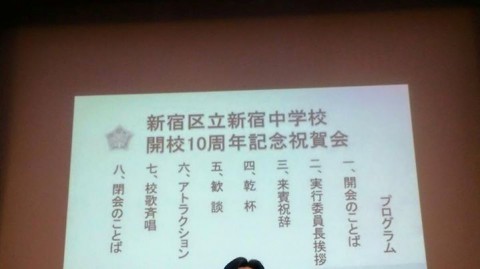 『新宿中学校開校10周年記念祝賀会』 に参加させていただきました。 新宿中学校は、私の母校である大久保中学校と東戸山中学校が統合して出来た学校です。 10周年、誠におめでとうございます! これからも素晴らしい学校であり続けられるよう、私も全力で応援して参ります。
